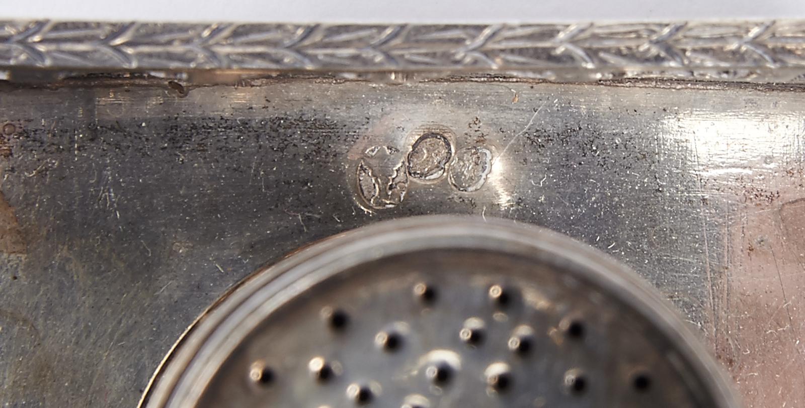 - marca de ensaiador de Lisboa (1822-1843), marca de ourives de Manuel Joaquim Seguro (1800-1873), duplamente remarcada com "Cabeça de Velho"