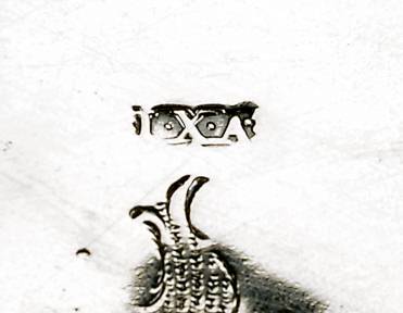 - decoração relevada "Flores e concheados", marca de ensaiador de Lisboa (1750-1770), marca de ourives atribuível a João Xavier Anastácio (1750-1804)