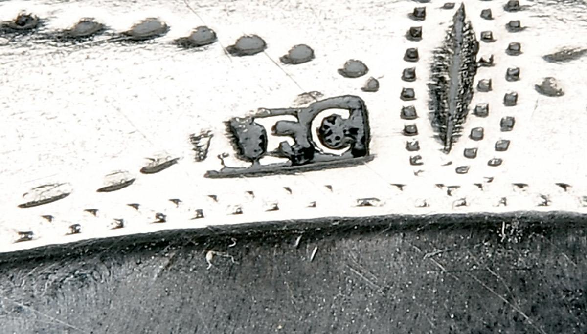 - bordo perlado e gravado, marca de ensaiador de Lisboa (1770-1804), marca de ourives de