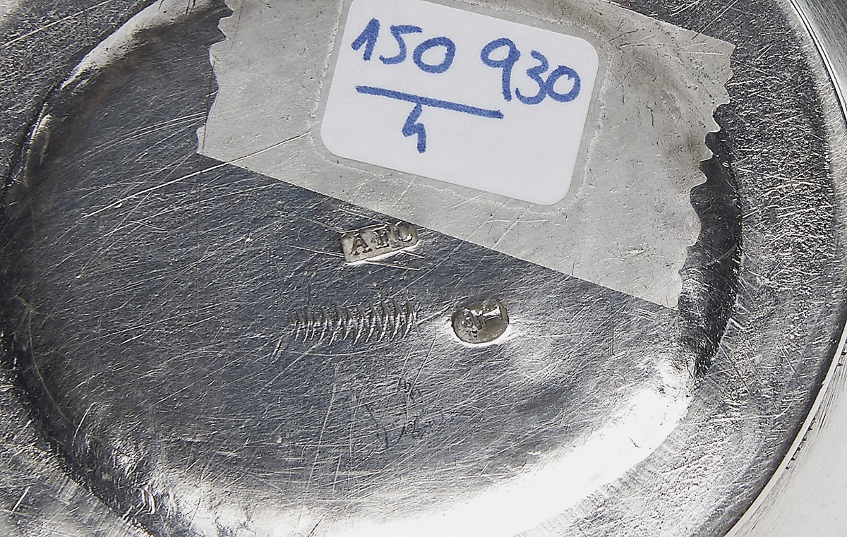 - decoração gravada "Gregas", marca de ensaiador de Lisboa (1804-1810) marca de ourives de António Firmo da Costa (1793-1824)