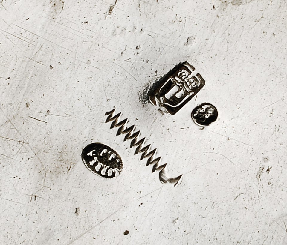 - marca de ensaiador do Porto (1877-1881), marca de ourives de João Joaquim Monteiro (1877-1886)