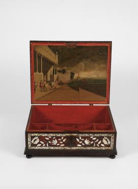 - madeira com marchetaria de tartaruga, madrepérola, marfim gravado e filetes de metal "Flores"