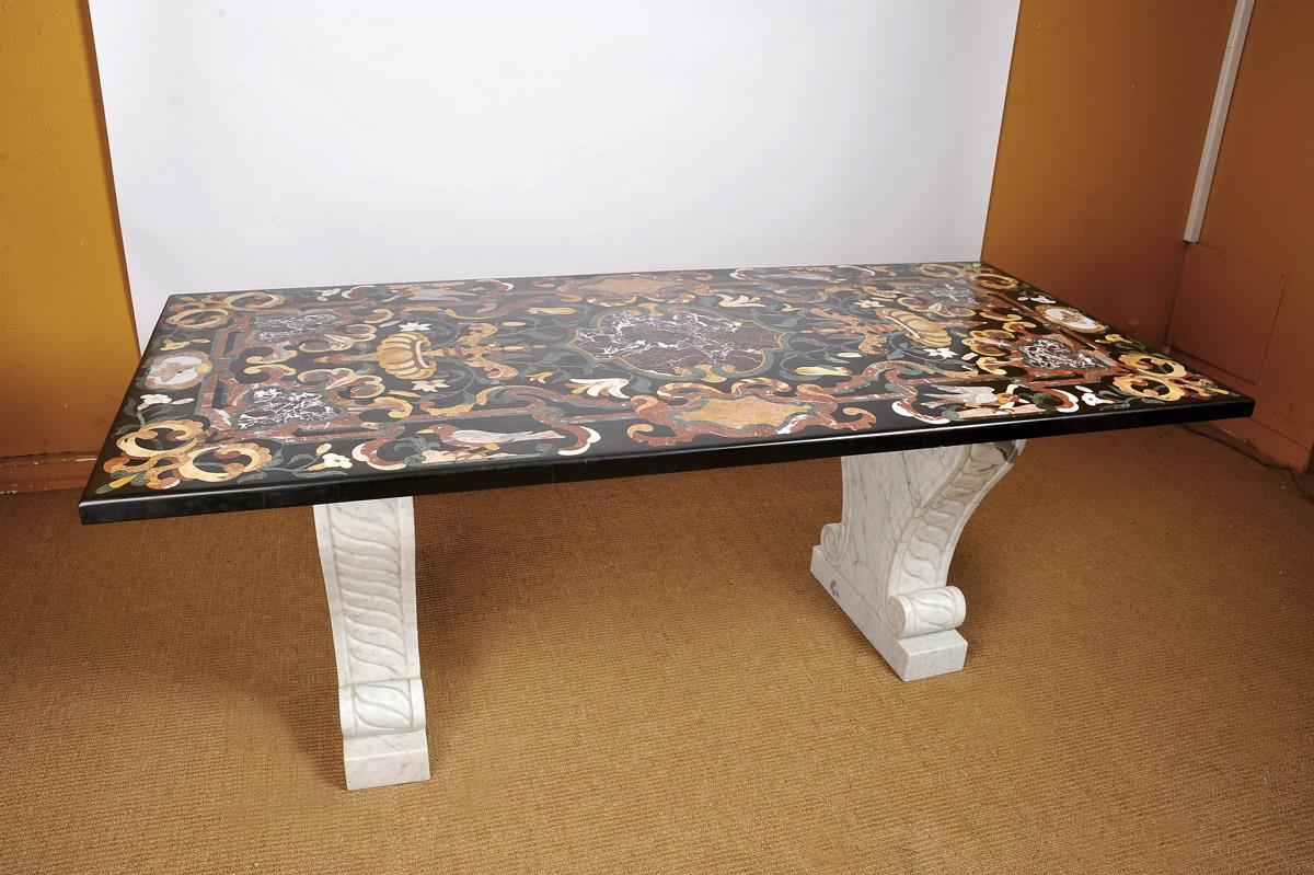 - marble, tampo de pedra-dura com embutidos "Ânforas, flores, pássaro e borboletas"