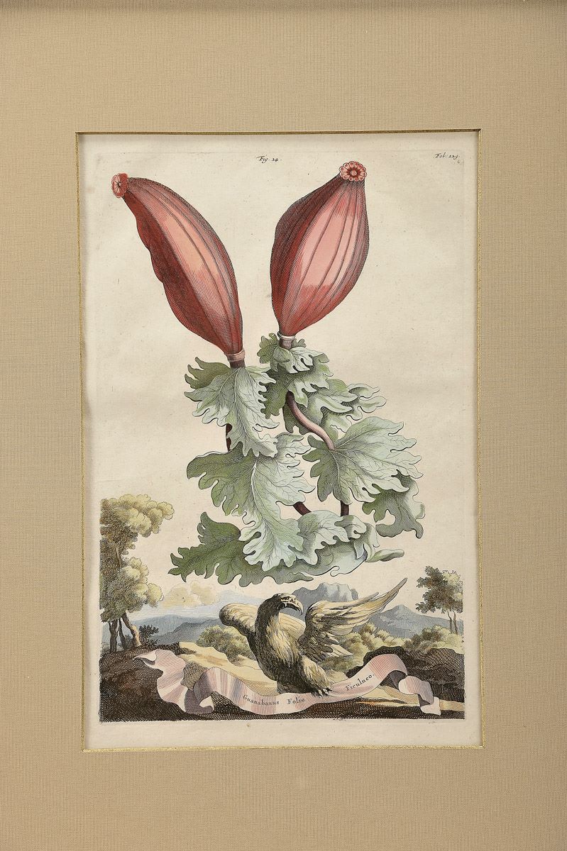 - as presentes gravuras foram produzidas para integrarem a obra: MUNTING, Abraham (1626-1683) - Naauwkeurige Beschryving der Aardgewassen, Waar in de veelerley Aart en bijzondere Eigenschappen der Boomen, Heesters, Kruyden, Bloemen, Met haare Vrugten, Zaden, Wortelen en Bollen, Neevens derzelver waare Voort-Teeling, gelukkige Aanwinning, en heylzaame Genees-Krachten, Na een veel-jarige Oeffening en eigen Ondervinding, In drei onderscheide Boeken, naauwkeuriglijk beschreeven worden; Door der Heer", Utrecht and Leiden, Pieter vander Aa and Francois Halma, 1696.