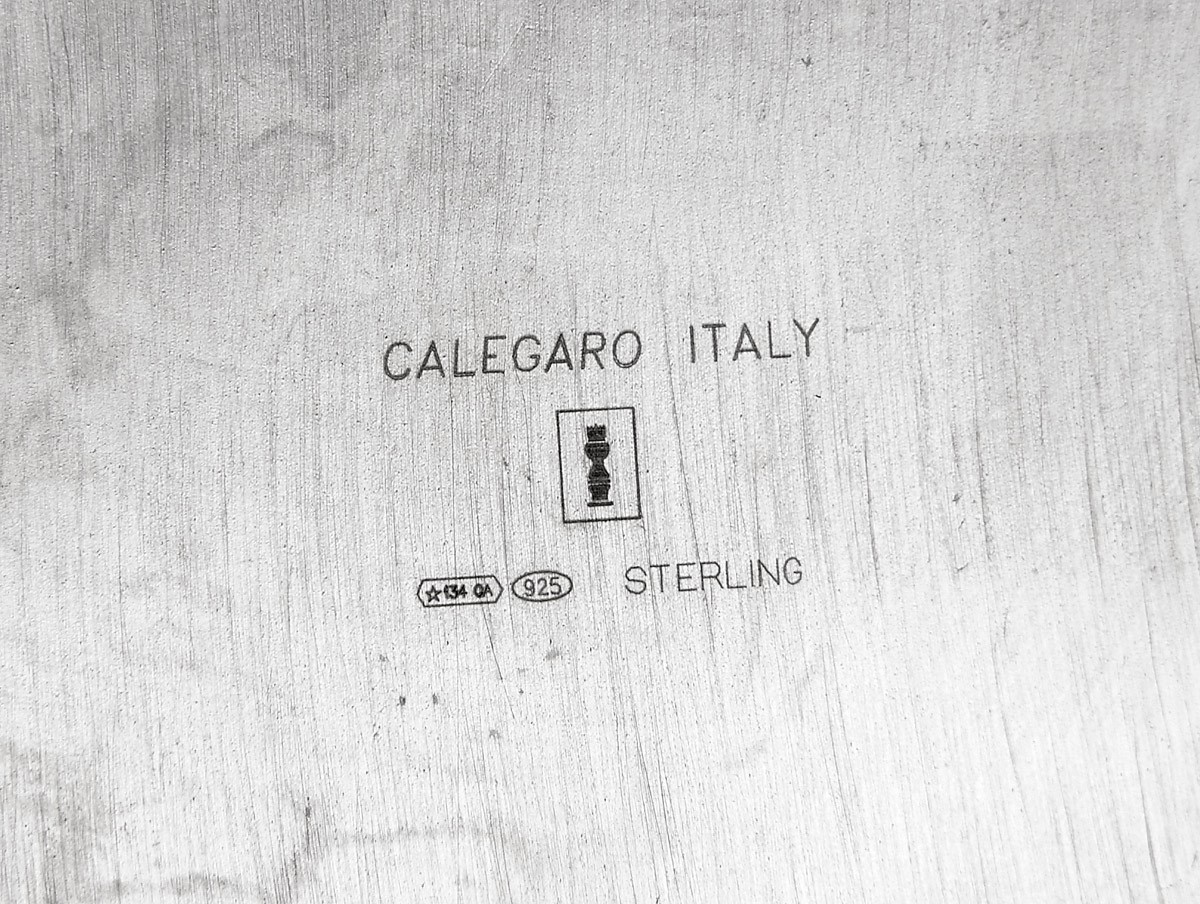 - decoração espiralada, convexa, marca de ourives da cidade de Carrara nº 134, remarcado com contraste do Porto (pós-1985)