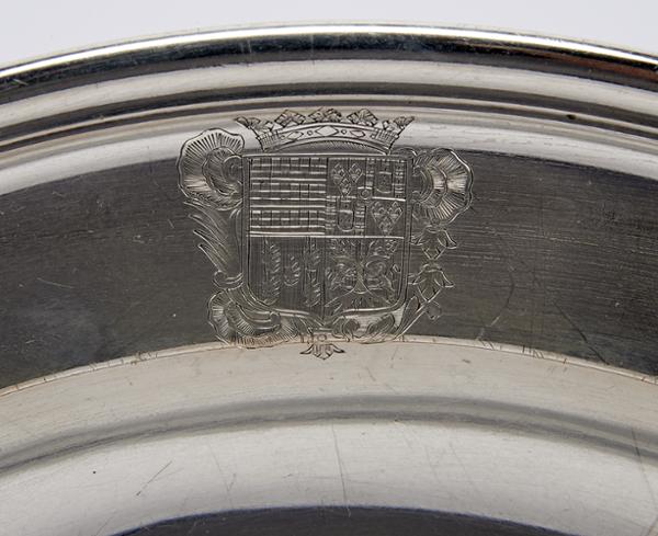 - decoração gravada com armas esquarteladas: 1º - Magalhães; 2º - Meneses (dos marqueses de Marialva); 3º - Abreu; 4º - Cardoso; coronel de nobreza - armas de D. Maria Claudia de Noronha de Abreu Cardoso de Magalhães (1727-1806), mãe do 1º conde de São Martinho