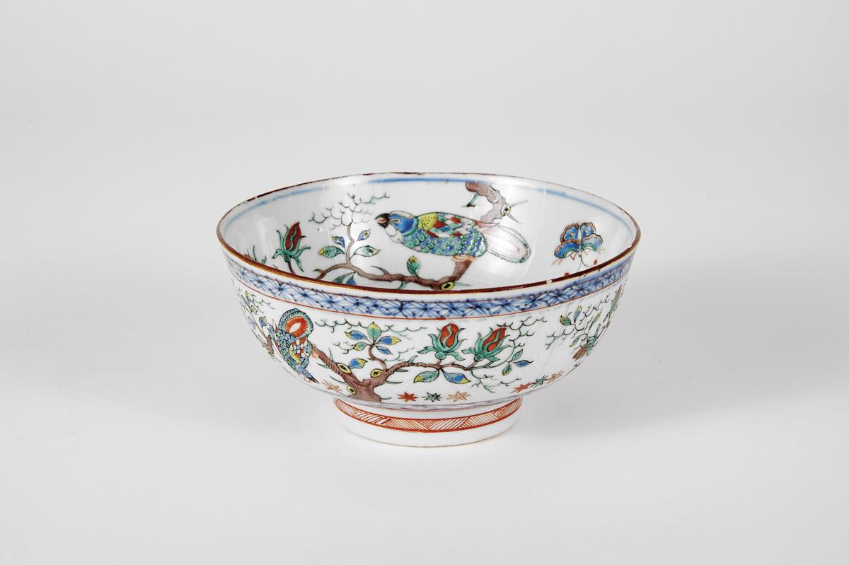 - decoração adamascada, policromada e dourada "Papagaios, borboletas e flores"