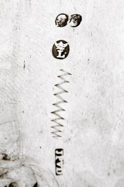 - composto por campainha, dois porta-penas, areeiro e tinteiro, marca de ensaiador de Lisboa (1822-1843), marca de ourives de Joaquim Prudêncio Vital Dinis (1812-1879)