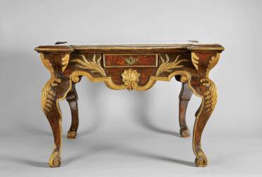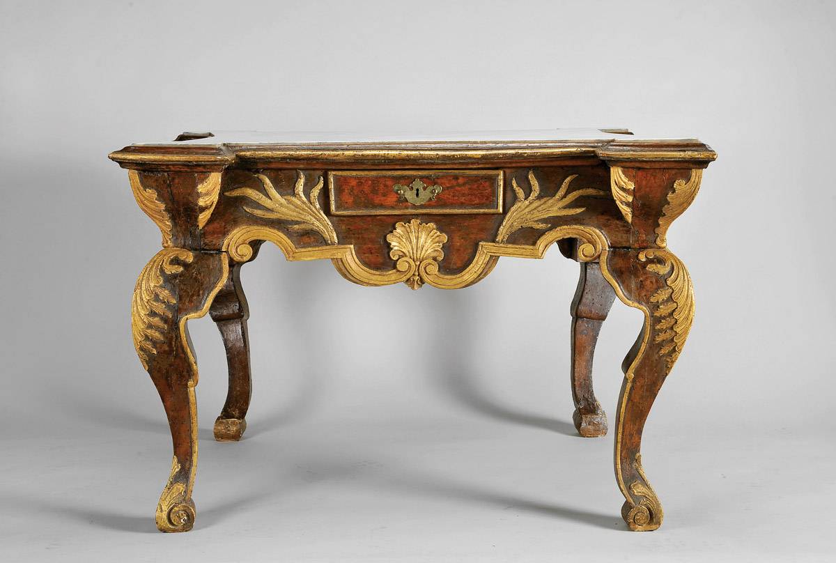 - restauros, vestígios de insectos xilófagos, dourados posteriores, tampo não original em mármore