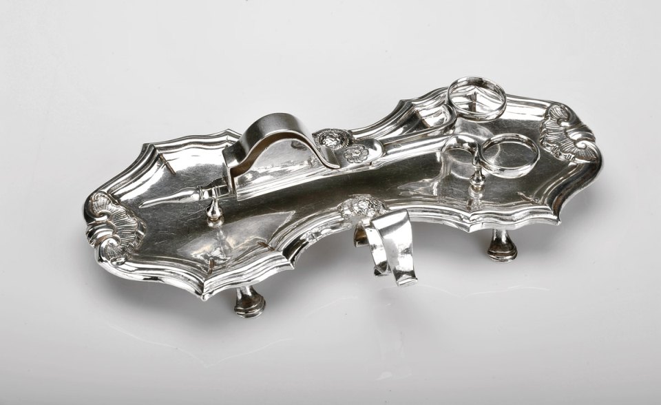 tray with Oporto unidentified GS makers mark, candle snuffer twice "Cabeça de Velho" marked,