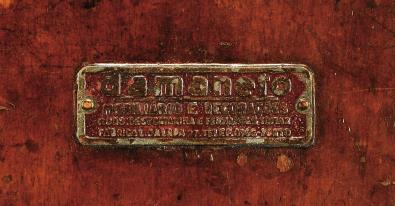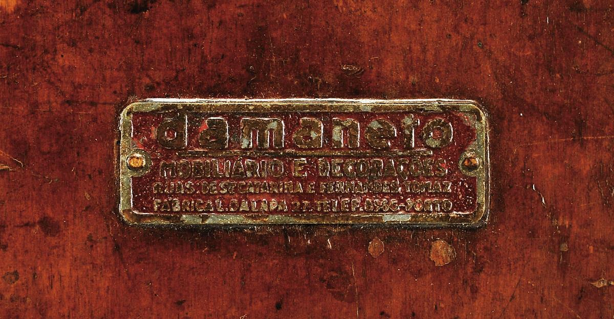 - etiqueta metálica no verso - DAMANETO - MOBILIÁRIO E DECORAÇÕES - RUAS SANTA CATARINA E FERNANDES TOMAZ - FÁBRICA L. DA LAPA, 27 - TELEF. 8566 - PORTO