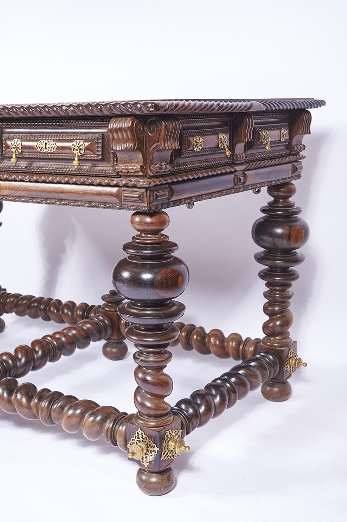 - pernas e travejamentos torneados, puxadores e aplicações em metal amarelo recortado e vazado