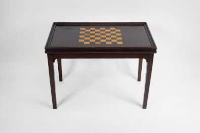 - reverso com tampo de xadrez/damas, peças em marfim torneado