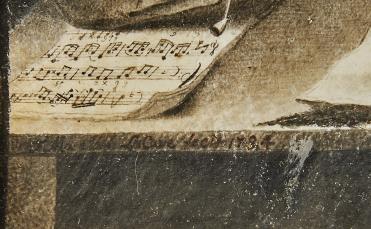- assinado F MORELLON DE LA CAVE (provavelmente François Morellon de la Cave - séc. XVIII), datado de 1734