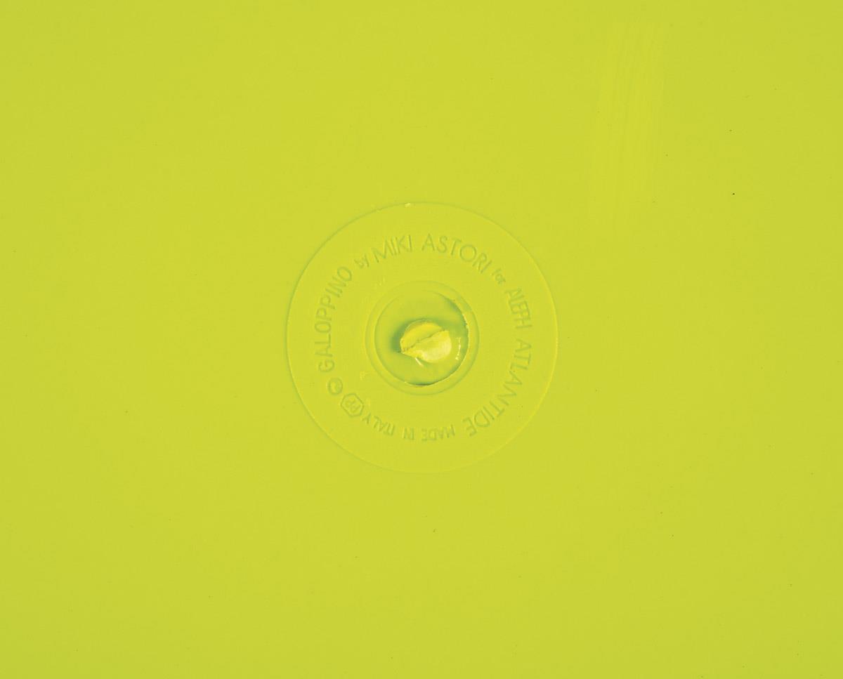 - três tampos em polipropileno verde sendo o superior transformável em bandeja de ir à cama, , rodas de plástico