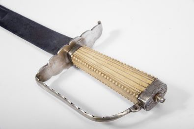 empunhadura em metal prateado e marfim