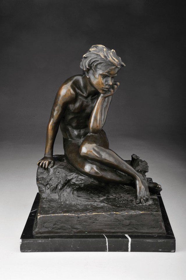 Notes: The original sculpture in Carrara marble, dated 1890 and 3rd place at the Salon de Paris that year, integrates the collections of the Museu Nacional Soares dos Reis, Oporto, and is illustrated in its "Roteiro da Colecção " p. 104, fig. E16, Inv. 2 CMP.