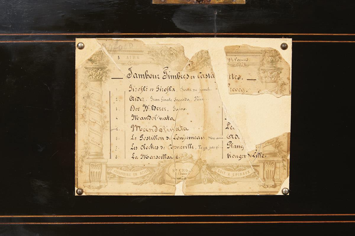 - mecanismo em metal e bronze com 8 melodias, camapainhas, tambor e castanholas .