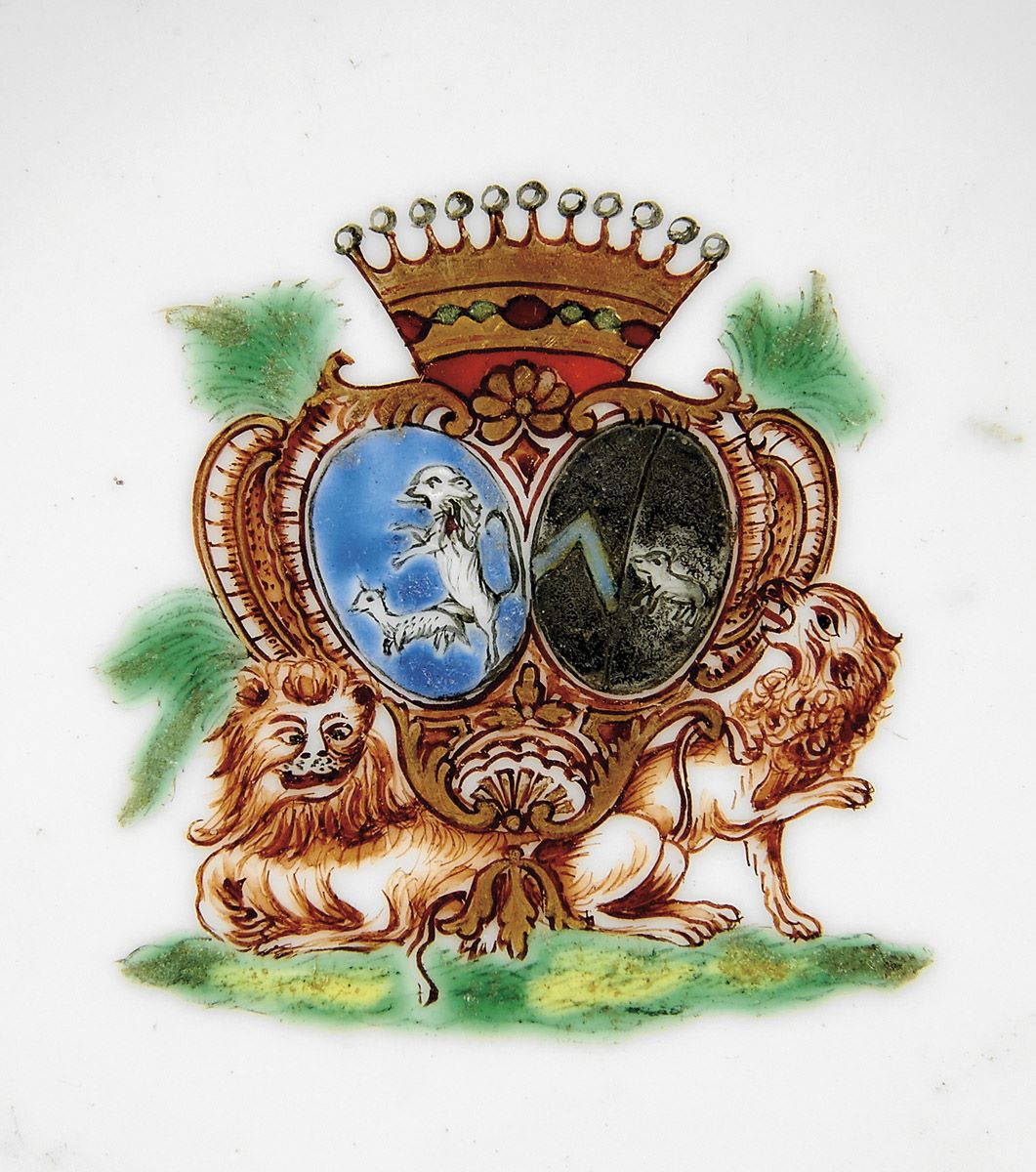 - decoração policromada e dourada com armas de famílias europeias