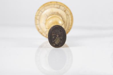- cunho em bronze com armas de Mesquita; timbre de Mesquita, elmo e paquife