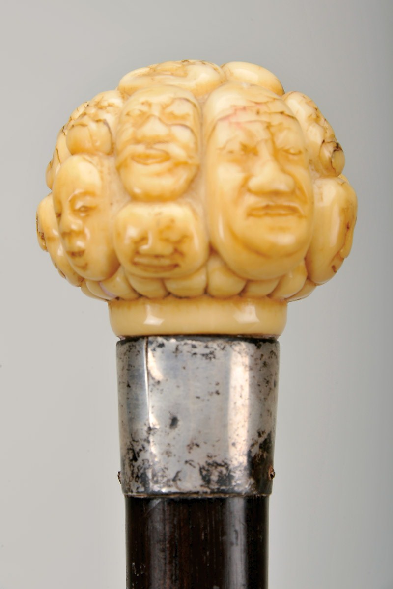 pomo em marfim esculpido