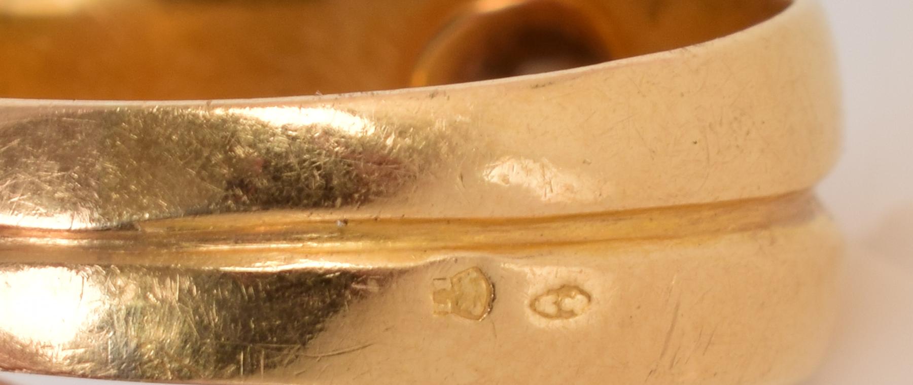 - cravejado com diamante em talhe antigo de brilhante com o peso aproximado de 0,35 ct.