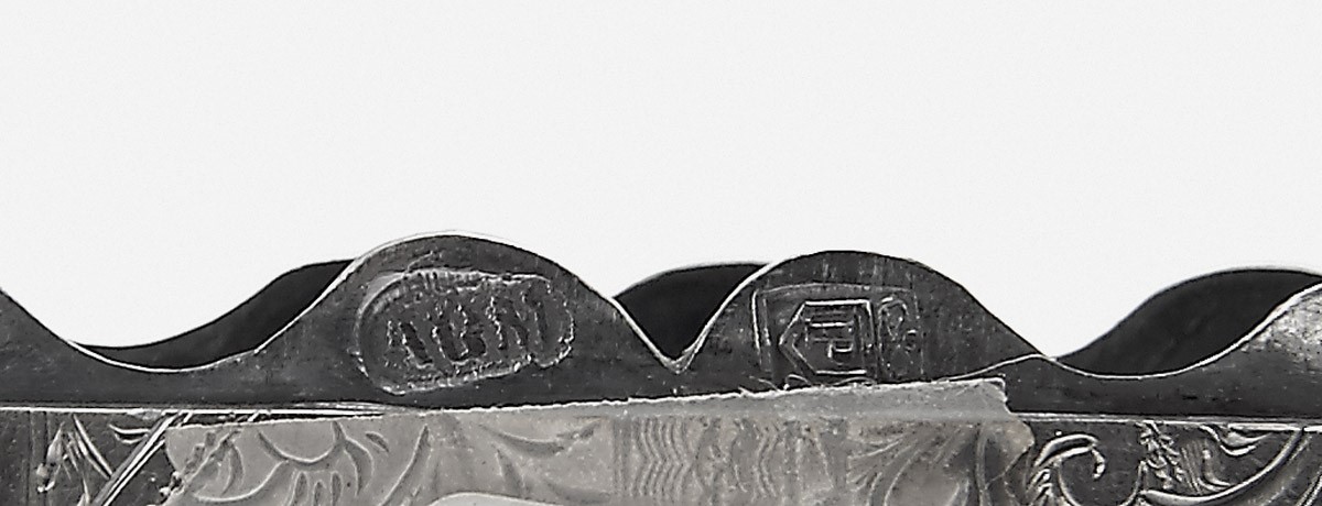 - decoração gravada e guilhochada com monograma MC, marca de ensaiador do Porto (1877