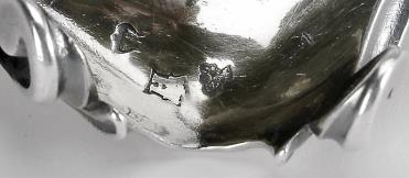 - decoração gravada e relevada, mmarca de carga de Paris(1744-1750) e marca de descarga (1748), marca de ourives de Claude Dargent (1722-1771)
