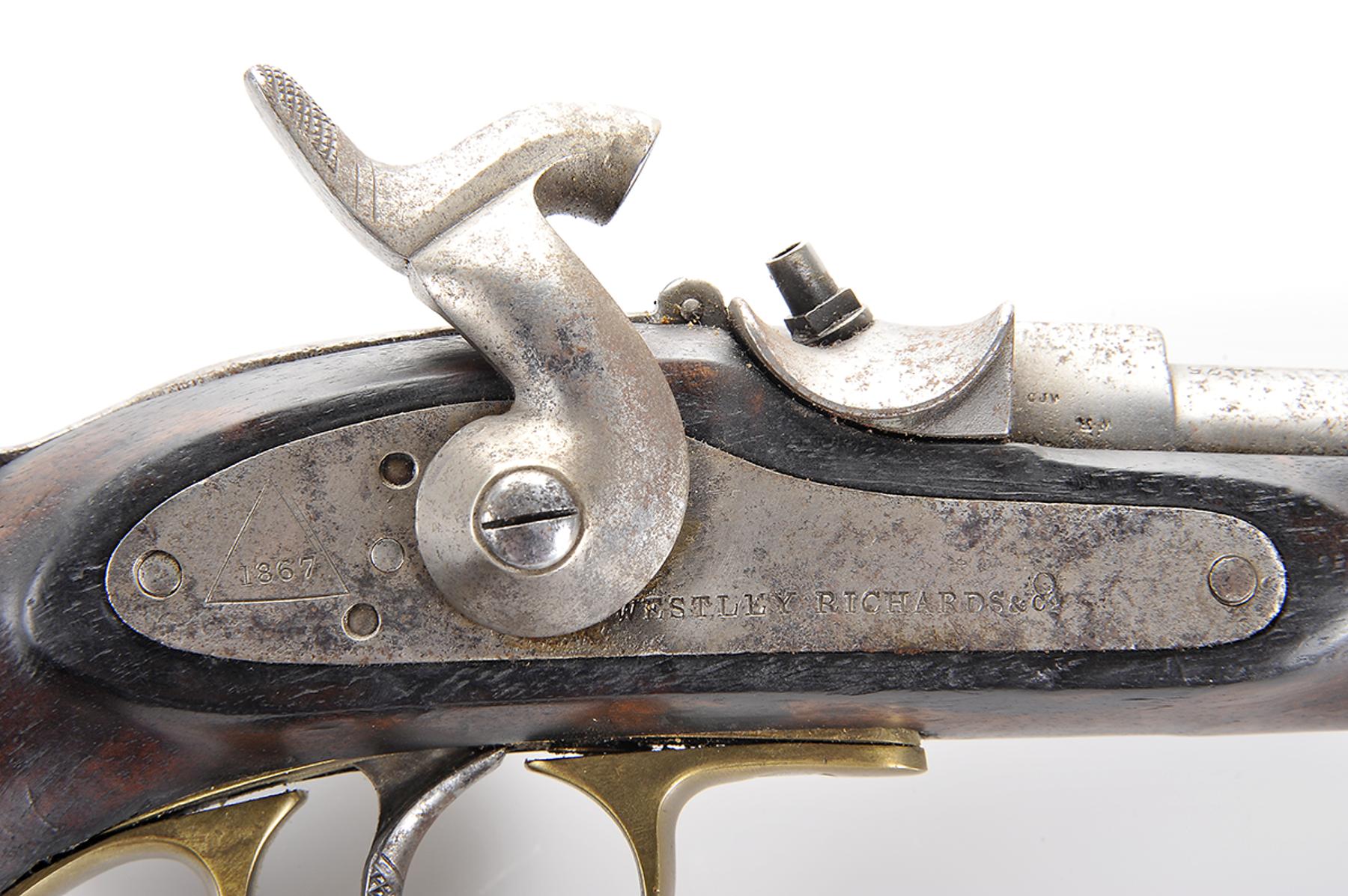 - sistema “Westley Richards" com cano Whitworth, modelo com vareta de limpeza nº 311, sistema de retro-carga com percussão conhecido por "Monkey-tail",