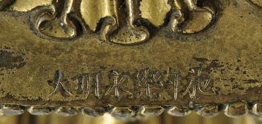 - China, dinastia Ming - período Yongle (1360-1424), marca do reinado em kaishu "Da Ming Yongle Nian Shi"