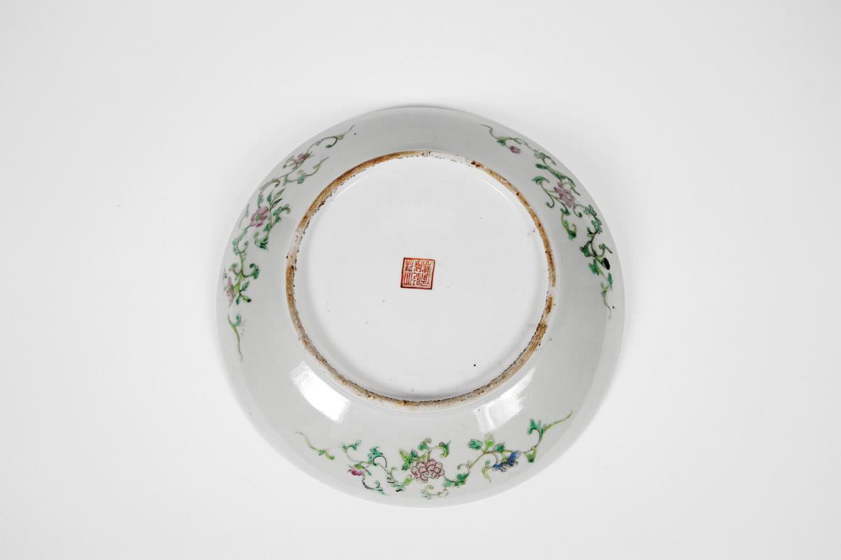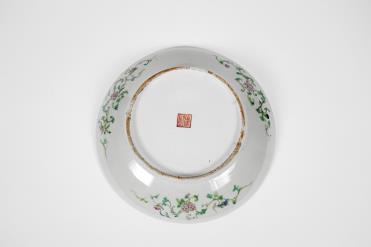 - decoração policromada "Pássaro e flores" sobre fundo «celadon»