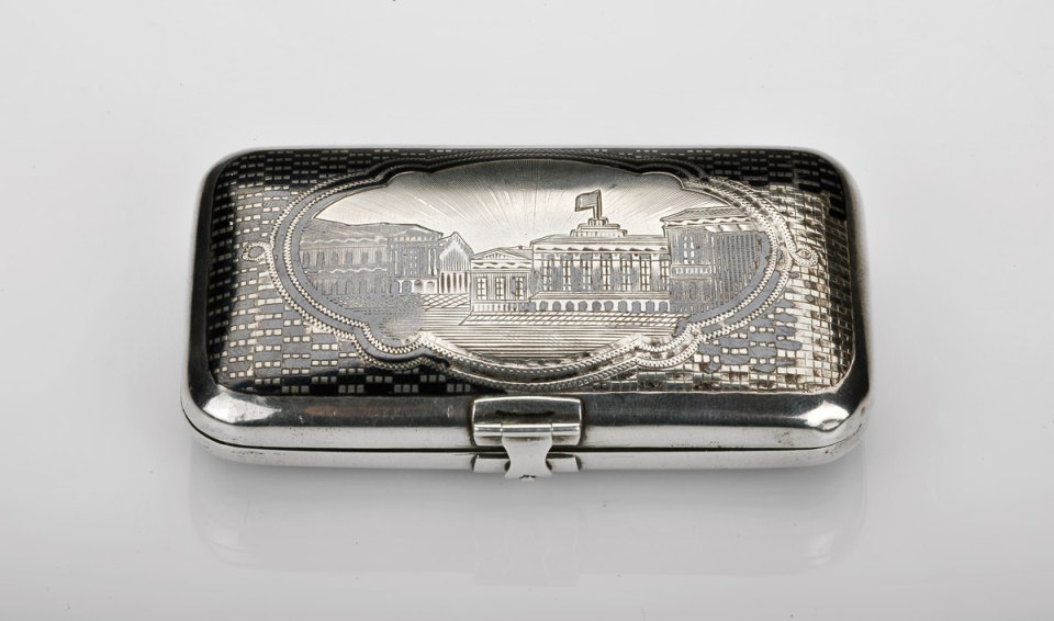 - marca de teor de 84 zlotnicks, marca de ensaiador de Moscovo B.C (1867), marca de ourives Michael Goloshchapov (1883-1912)