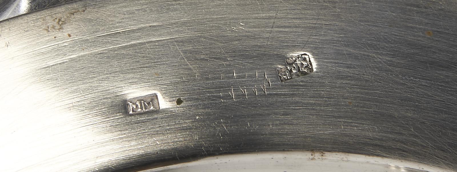 - marca de ensaiador do Porto (1810-1818), marca de ourives MM (1790-1810), remarcados com "Cabeça de Velho"