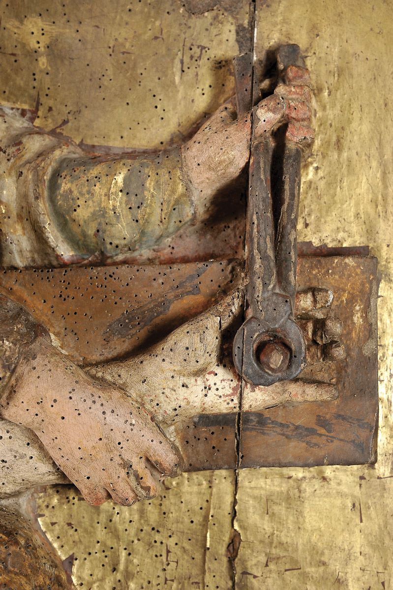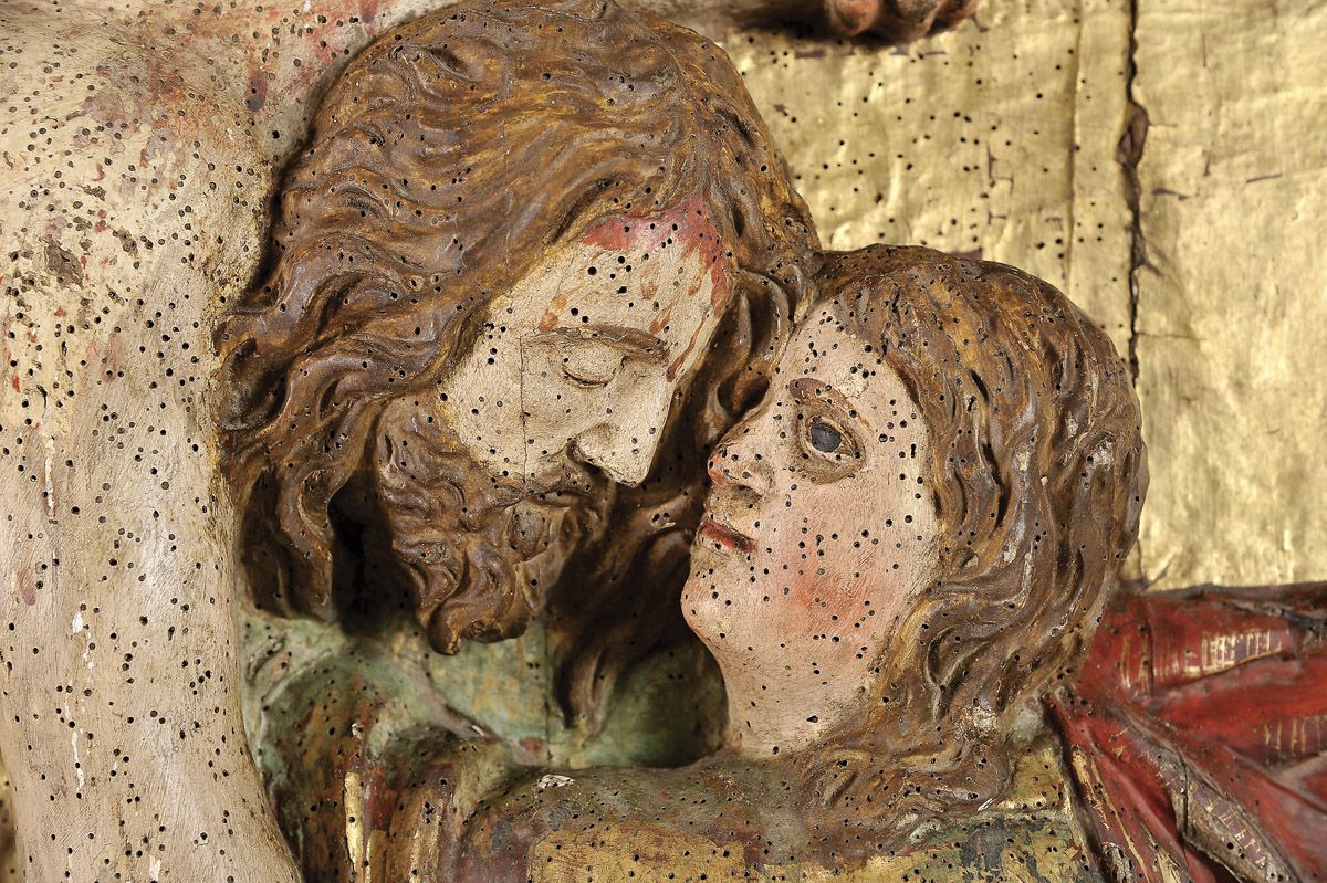 - faltas na policromia e no dourado, falta da parte inferior da moldura, vestígios de insectos xilófagos