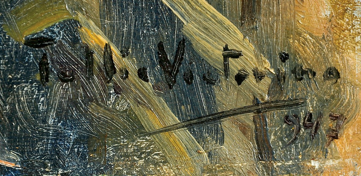 - TÚLIO VICTORINO - 1906-1967, "Landscape with figures",◙oil on board,◙signed and dated 1947