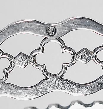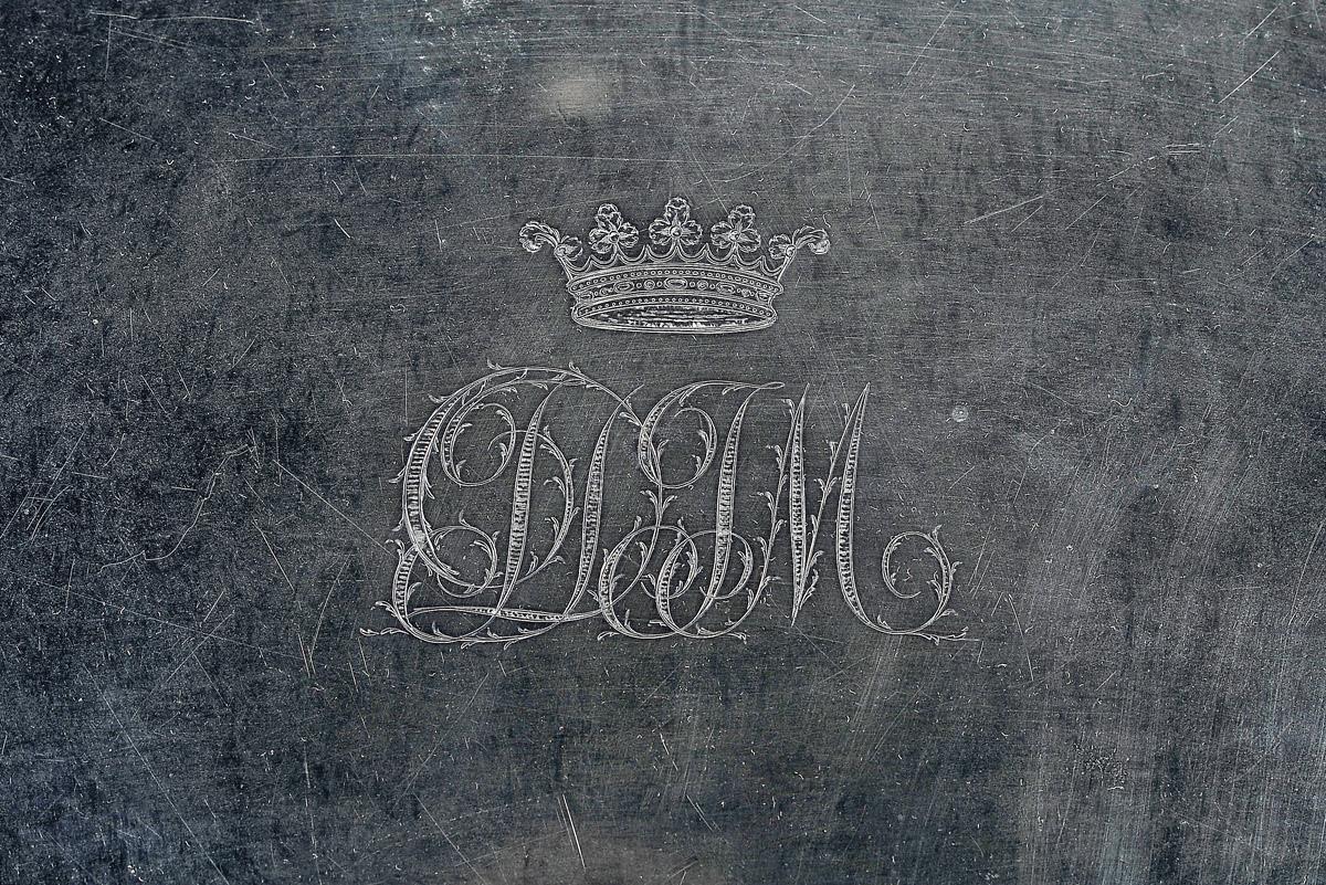 - decoração gravada com monograma JDJM encimado por um coronel de duque,◙marca de ensaiador de Lisboa (1810-1822), marca de ourives de João Ramos Ortiz (1810-1857)