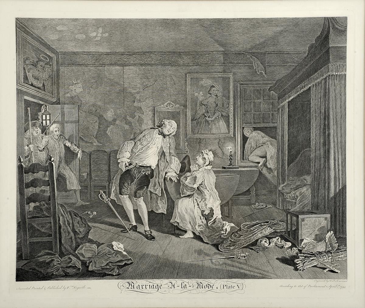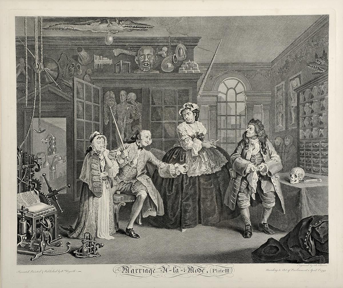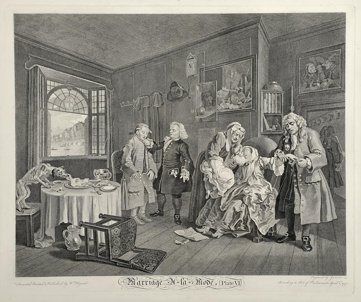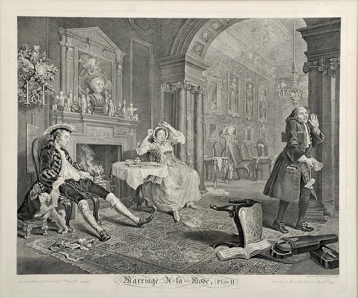 - da série "Marriage à-la-mode: plates I a VI". ◙Conjunto completo de uma reedição tardia não identificada. Subscrições: Invented, painted & published by W. Hogarth - Engraved by G. Scotin)