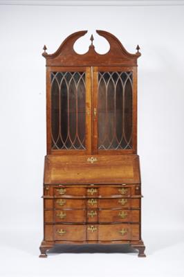 - interior com gavetas e escaninhos, ferragens em metal amarelo gravado, corpo superior com vidrinhos, interiores em carvalho