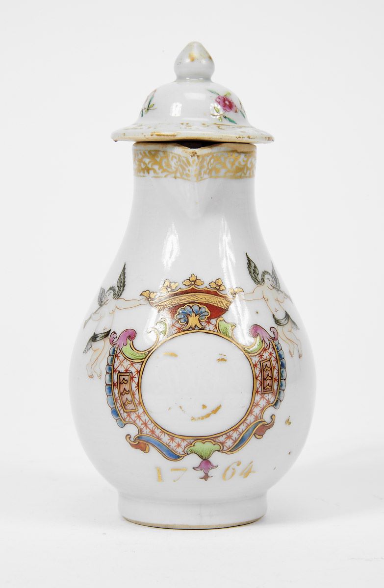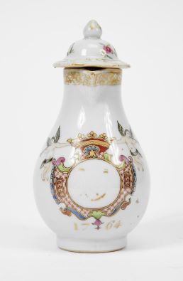 - decoração policromada e dourada "Escudo coroado com monograma ladeado por dois tenentes", datada de 1764
