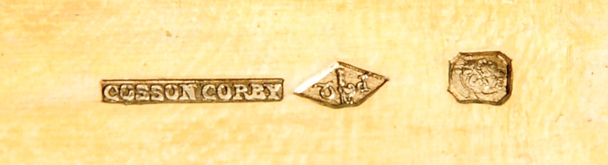 - composto por 3 colheres de servir, 30 colheres de sopa, 49 facas e 30 garfos de resto e 12 colheres de sobremesa, gravação com armas de família francesa, contraste de Paris, marcas de ourives diversos, lâminas marcadas Antoine Cosson-Corby (1851-1879)