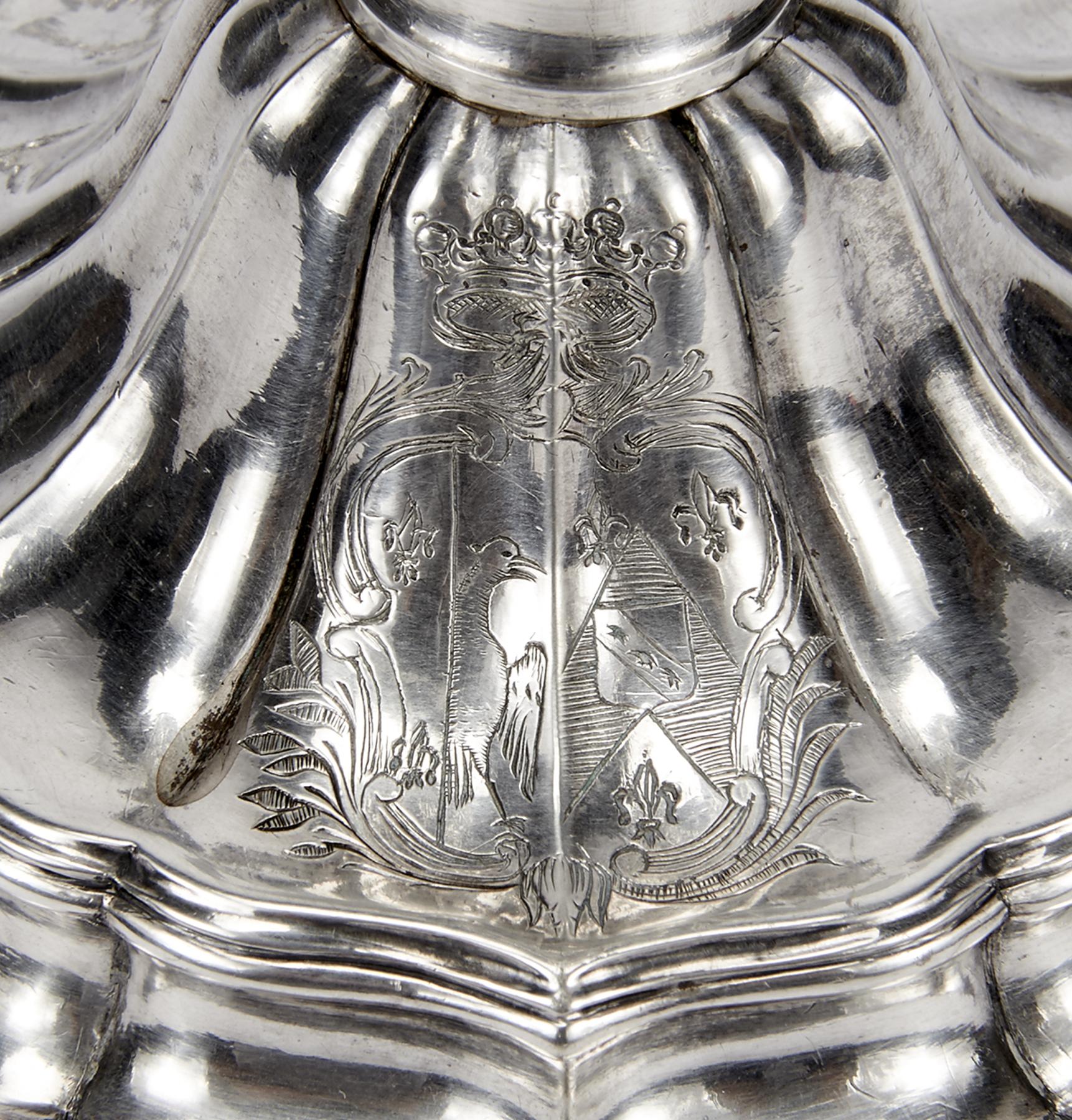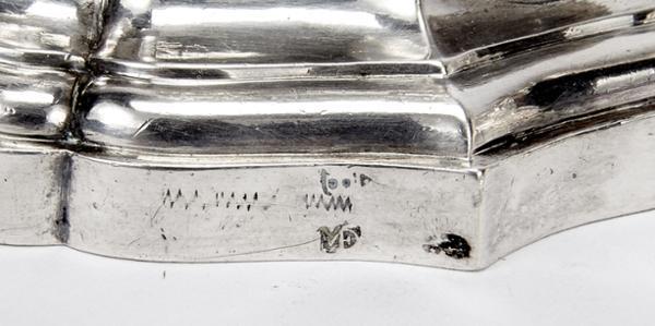 - castiçais com marca de ensaiador de Braga e marca de ourives de Manuel de Oliveira Figueiredo da Cunha, arandelas com marca de ensaiador de Braga (reg. 1829) e marca de ourives ilegível