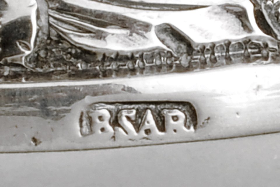 Lisbon assay mark (1870-1879), BSAR makers mark (1870-1881), Portuguese, small bruise,
