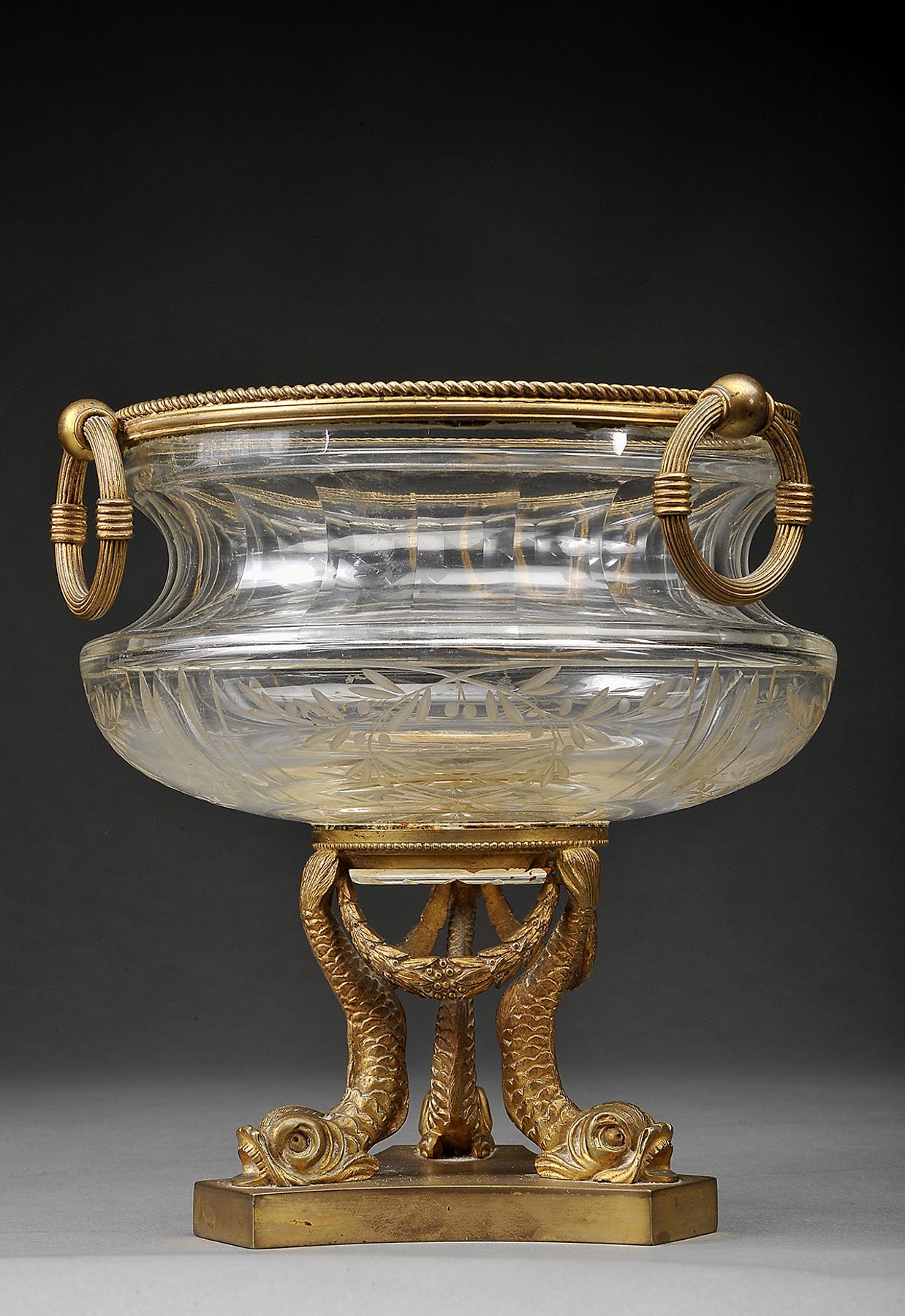 - aro e base em bronze relevado e dourado "Golfinhos"