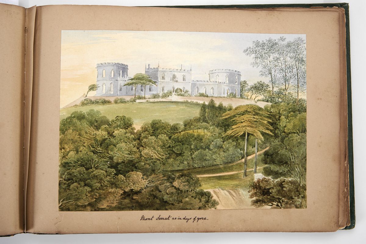- Álbum constituído por 29 aguarelas, 6 desenhos, 1 litografia e 1 mapa manuscrito, organizado pela autora (E. Wallington) e oferecido a seu filho George, que provavelmente foi oficial da Marinha Britânica e que terá falecido num naufrágio ocorrido no Mar da China. A folha de guarda inclui a seguinte inscrição manuscrita não assinada nem datada: My Album. This book is very dear to me: it was compiled by me for my own beloved George, to take to sea with him, to serve him as a remembrance of places, and many very happy days we have spent together... Seguem-se as aguarelas (e desenhos) 23 das quais representam aspectos de Sintra onde a família Wallington terá residido no início da segunda metade do século XIX. Nenhuma das aguarelas está datada ou assinada, mas quase todas elas incluem legendas. Contudo, dois dos desenhos, que representam a residência de família Wallington no Reino Unido, apresentam datas de 1851 e 1870. No final, alguns pequenos desenhos sem relação com Sintra e um mapa manuscrito do Mar da China onde supostamente George Wallington terá naufragado. As aguarelas, trabalhadas com alguma ingenuidade, encontram-se coladas na folhas do álbum (dim. máximas 21x30 cm.), uma por folha (excepto duas da Peninha, de menores dimensões, que estão na mesma folha). Alguma acidez. Encadernação da época, com a lombada em pele, um pouco cansada.