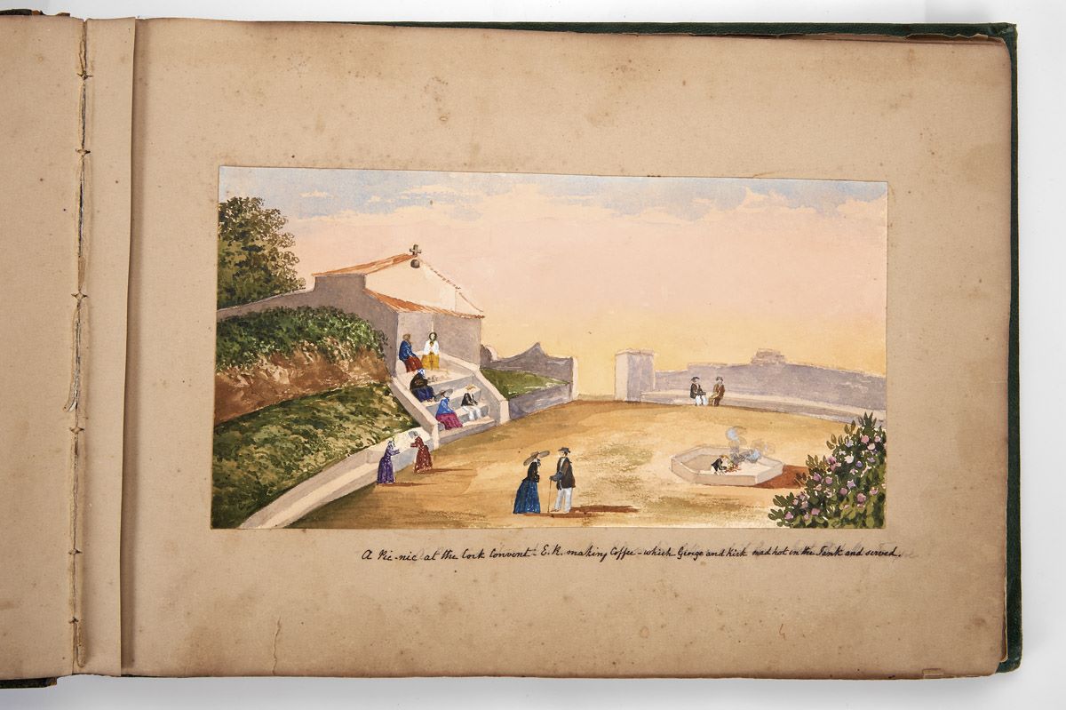 - [WALLINGON, E[lizabeth?].- Sketches.- Século XIX (ca. 1850-1870).- 29 aguarelas, 6 desenhos, 1 litografia, 1 mapa manuscrito.- 24x34 cm.- E.