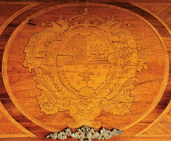 - madeira folheada a pau-santo com embutidos e filetes "Armas de França"