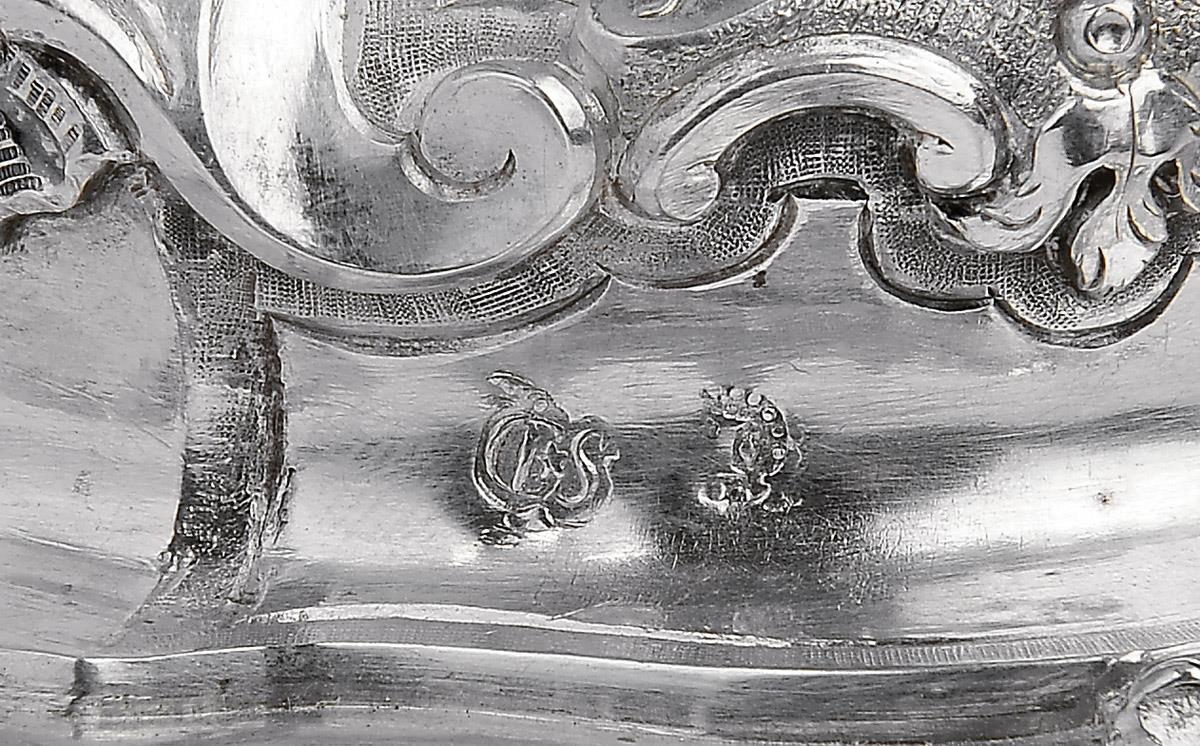 - decoração relevada e gravada "Instrumentos da Paixão", marca de ensaiador do Porto (1768-1810), marca de ourives de José Coelho Sampaio (1768-1784)