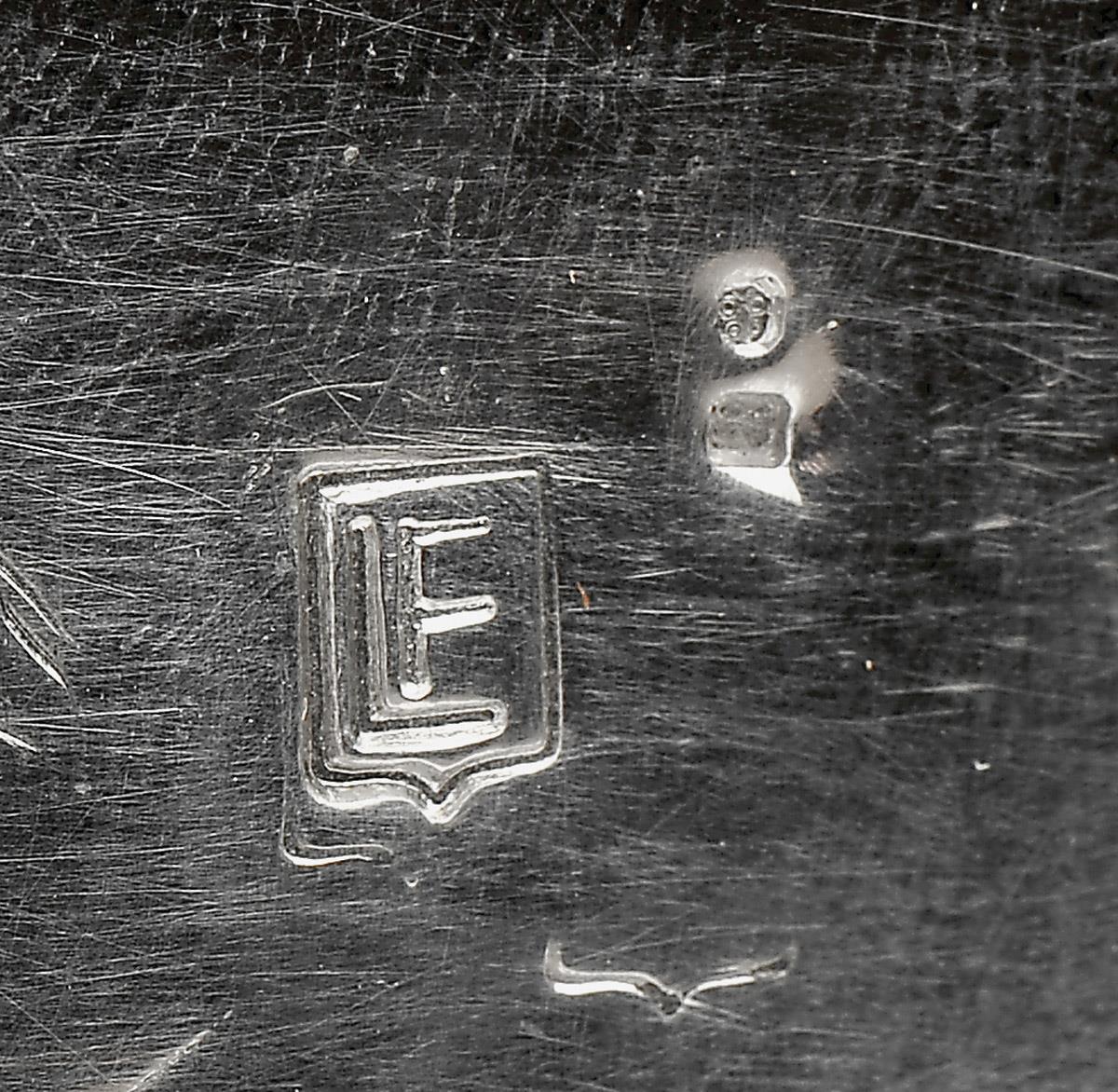 - aplicações em osso e prata, cravejada com zircónias, granadas, pasta vítrea azul, turquesas, coral e pérola de cultura, contraste do Porto (pós-1985), marca de ourives de Virgílio da Costa Barroca (1983), marca de LUÍS FERREIRA