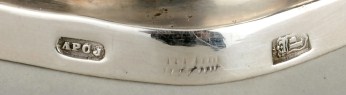 - marca de ensaiador do Porto (1877-1881), marca de ourives António Pinto Cruz Júnior (1870-1881)