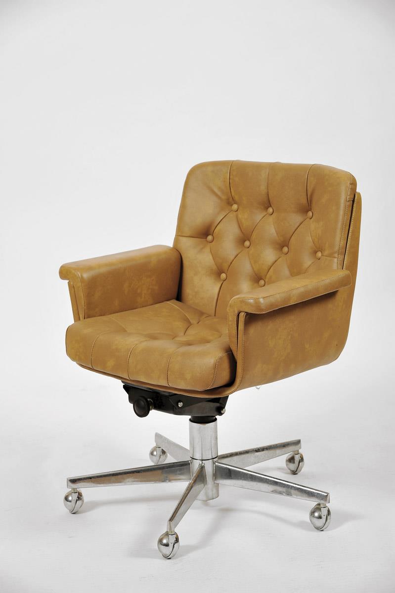 - pernas em metal cromado, pés com rodízios, altura regulável